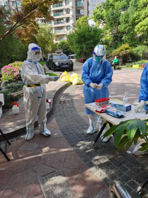 Since the current epidemic outbreak, Chen Zhenpeng, Member of the CPC SIG Committee and Director of the Organization Department, has assisted his community in volunteer work, including nucleic acid testing, supplies carrying and resident service. Upon receiving a notice from the Organization Department of the CPC Jing'an District Committee on April 16, he, who had just taken off the protective suit, immediately hurried to the Zhangjiazhai Neighborhood Committee, Shimen Second Road Sub-district to which he would assist. There are nearly 3,000 residents in the large international communities and old-fashioned residential communities governed by the Zhangjiazhai Neighborhood Committee, the communities have complicated internal structures, and the epidemic situation was grim and complex in the communities. Upon reporting to the neighborhood committee, he immediately devoted himself to new volunteer work. He helped to carry vegetables, rice, oils and other supplies, scanned nucleic acid test code for 500-600 residents, stood in the scorching sun for 3-4 hours, often trotted in a hurry to deliver test supplies to 8-9 nucleic acid test points in the community, and sometimes took risks to go upstairs six-floor buildings closed down due to positive cases to deliver living supplies. As the leader of the volunteer team, after finishing a whole day of volunteer work, he would communicate with the team members in the volunteer WeChat group of SIG, to find out their working and living conditions, inspire them and boost their confidence, thereby bringing them together to develop new combative competitiveness.