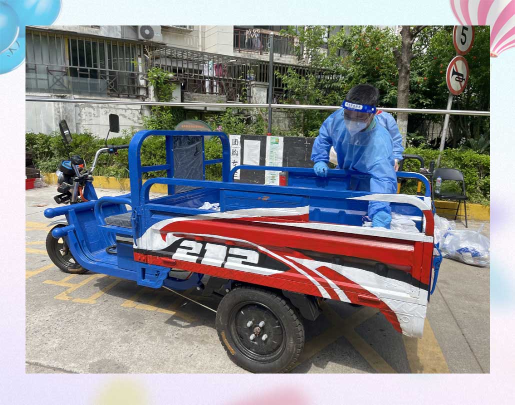 Painter's word: A community raised money to buy an electric three-wheeler during epidemic control and painted it, adding the logo of Ferrari and the striking figure of "212". Volunteers were proud of it.