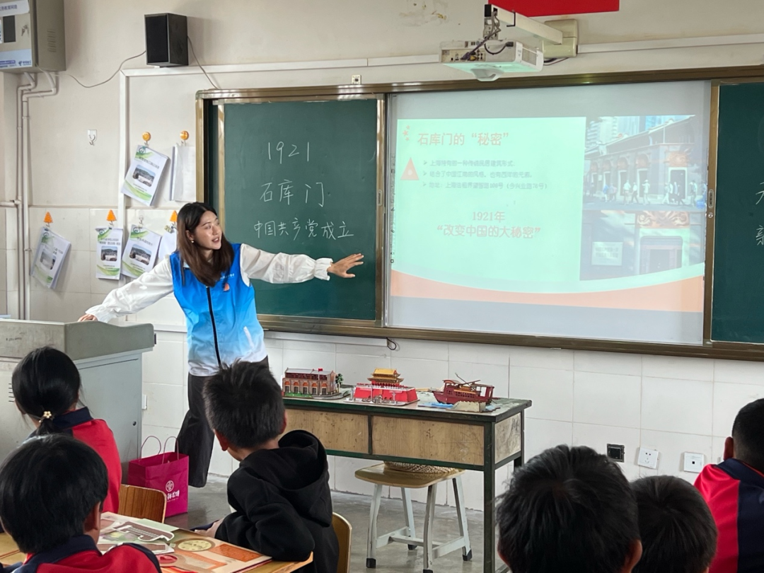 “從石庫(kù)門(mén)到天安門(mén)”,從《江姐》到國(guó)家情懷。上海國(guó)際集團(tuán)的志愿者們充分利用上海“紅色文化高地”的資源優(yōu)勢(shì),給孩子們講述“從石庫(kù)門(mén)到天安門(mén)”的歷史故事,讓孩子們?cè)诔两襟w驗(yàn)中感悟家國(guó)情。而石庫(kù)門(mén)建筑拼裝模型,則讓2000公里外的孩子對(duì)“黨的誕生地”產(chǎn)生向往,在孩子們心中種下“聽(tīng)黨話跟黨走,長(zhǎng)大報(bào)效祖國(guó)”的萌芽。