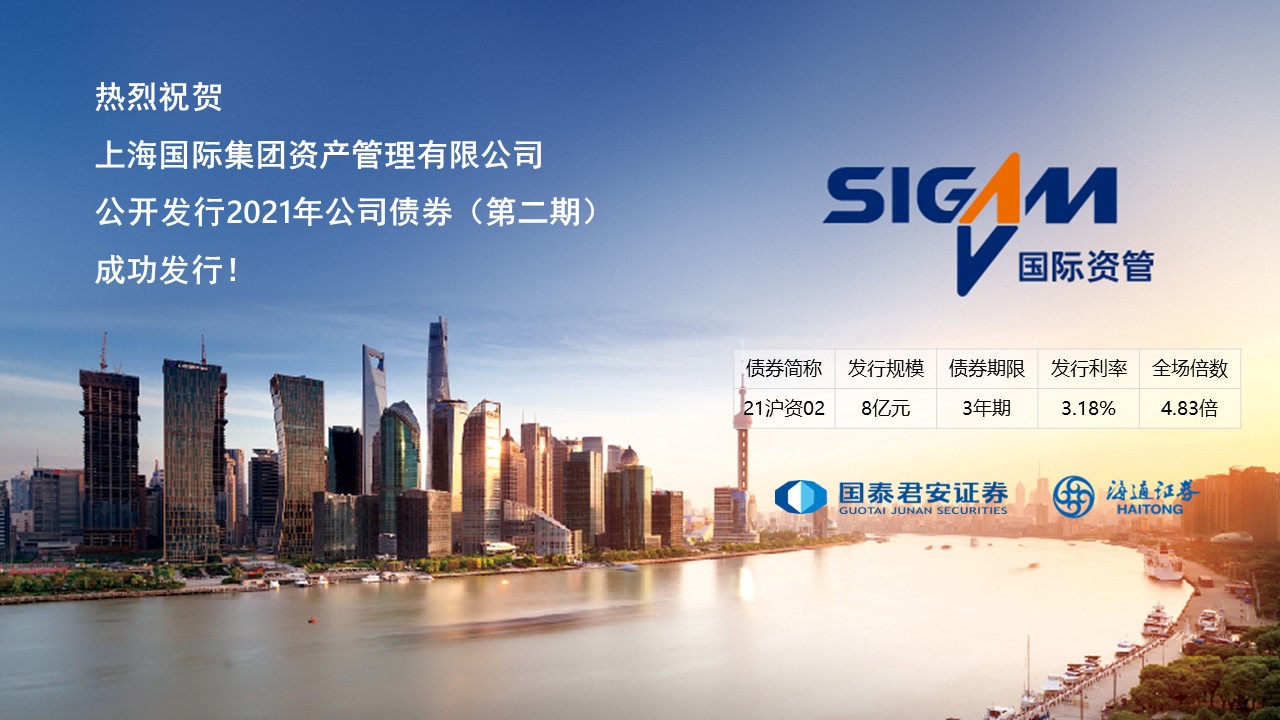 上海國際集團資產管理有限公司(以下簡稱“國際資管”、“公司”)公開發行2021年公司債券(第二期)(以下簡稱“本次債券”)于2021年7月14日成功發行!