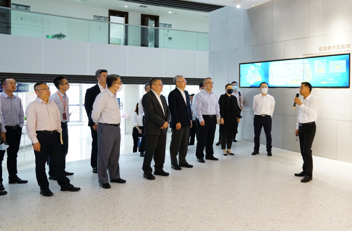 集團一行參觀了上海自貿區臨港新片區展示廳,臨港新片區管委會黨組成員、專職副主任武偉介紹了上海自貿區臨港新片區建設進展情況和推進臨港新片區金融開放與創新發展的措施,雙方就建設金融科技生態圈、設立FT賬戶等問題進行了探討。