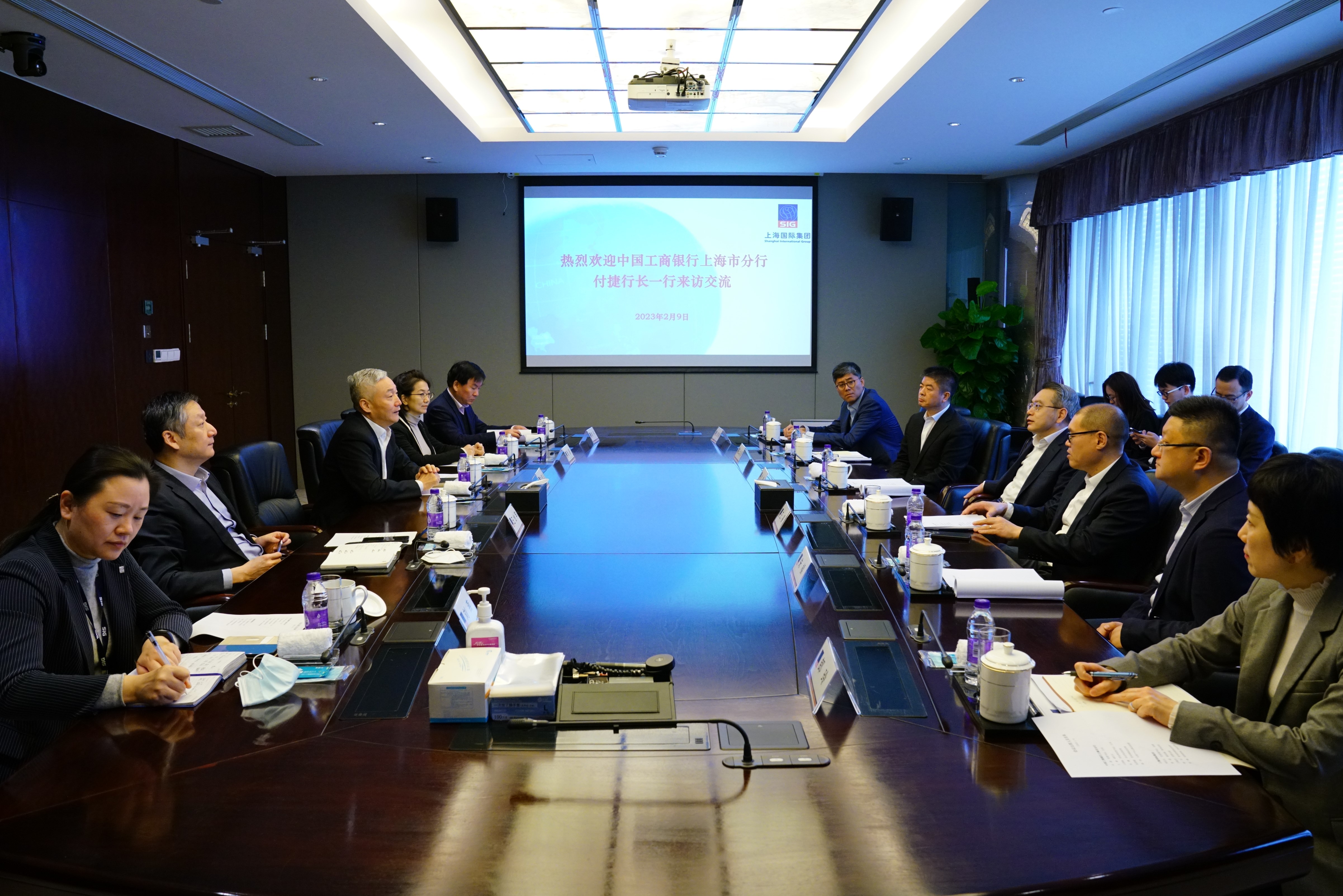 2月9日上午,集團黨委副書記、總裁劉信義接待工商銀行上海市分行黨委書記、行長付捷、副行長王睿等一行。集團副總裁、財務總監管蔚、投資總監王他竽參加接待。