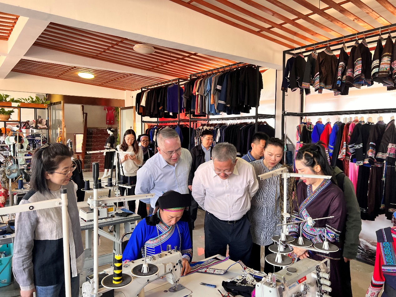 3月25日上午,調(diào)研組來(lái)到丘北縣非遺工坊,直觀了解丘北縣豐富的非遺文化資源和歷年文化遺美走訪成果,實(shí)地觀摩了工坊繡娘的生產(chǎn)過(guò)程。上海國(guó)資經(jīng)營(yíng)公司以“雙一百”幫扶行動(dòng)為支點(diǎn),自2019年發(fā)起“資善·遺美”非遺走訪項(xiàng)目,在丘北縣陸續(xù)走訪報(bào)道了火草、水竹傘、弦子舞等5站非遺項(xiàng)目,助力當(dāng)?shù)赜?022年9月成功申報(bào)獲批丘北縣唯一一家非遺工坊,激揚(yáng)文化自信,激生內(nèi)生動(dòng)力,切實(shí)將“指尖力量”持續(xù)轉(zhuǎn)化為振興力量,推動(dòng)非遺工坊建設(shè)成果更多惠及人民群眾。