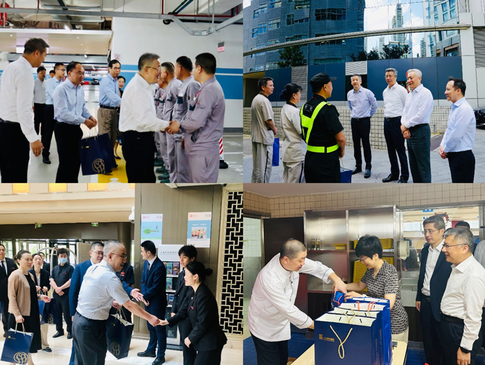 為切實(shí)做好防暑降溫工作,保障人員生命安全和身體健康,7月24日,集團(tuán)黨委書(shū)記、董事長(zhǎng)俞北華,黨委副書(shū)記、總裁劉信義等集團(tuán)領(lǐng)導(dǎo)班子成員分路前往集團(tuán)下屬樓宇、酒店、賓館,慰問(wèn)高溫下堅(jiān)守崗位的員工。