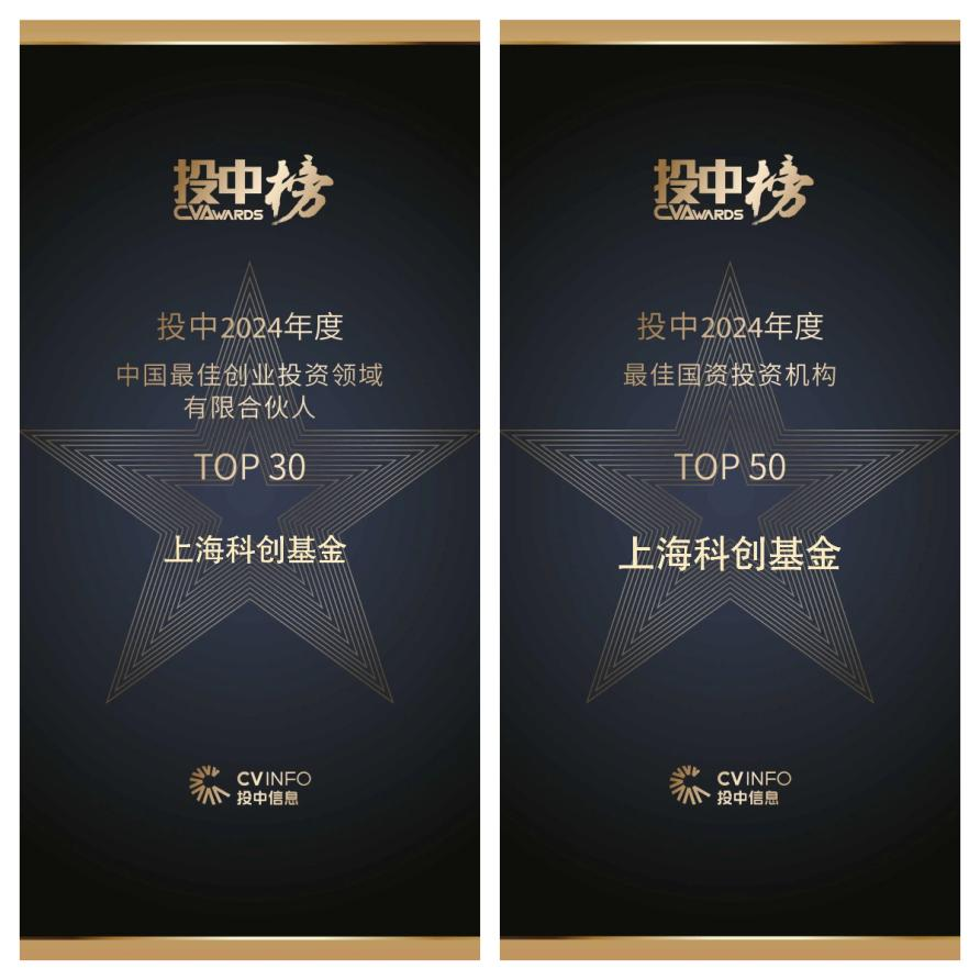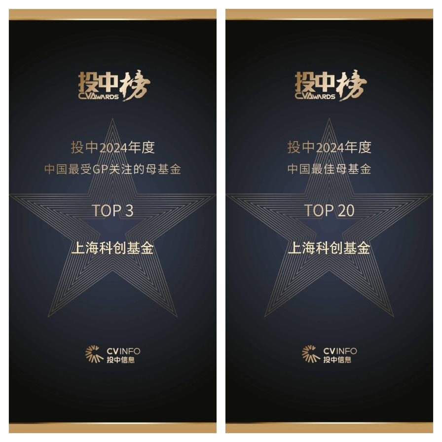 其中,上海科創(chuàng)基金獲“投中2024年度最受GP關(guān)注的母基金TOP3”“投中2024年度中國最佳母基金TOP20”“投中2024年度中國最佳創(chuàng)業(yè)投資領(lǐng)域有限合伙人TOP30”和“投中2024年度最佳國資投資機(jī)構(gòu)TOP50”。