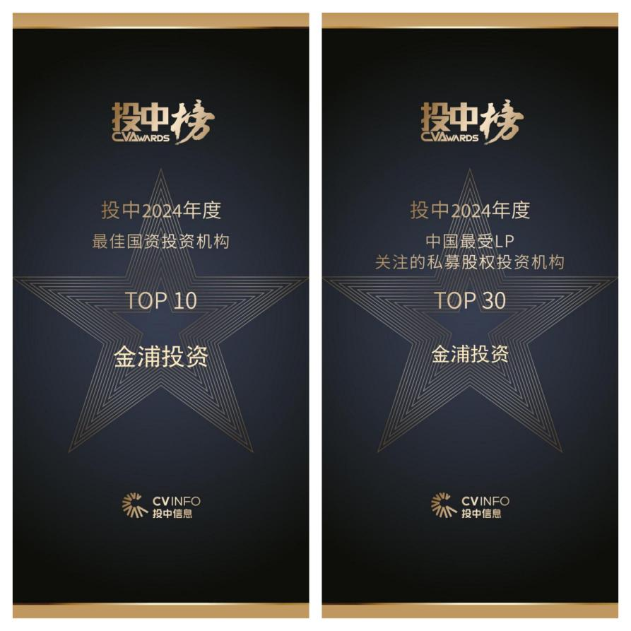 金浦投資獲“投中2024年度最佳國資投資機(jī)構(gòu)TOP10”和“投中2024年度中國最受LP關(guān)注私募股權(quán)投資機(jī)構(gòu)TOP30”。