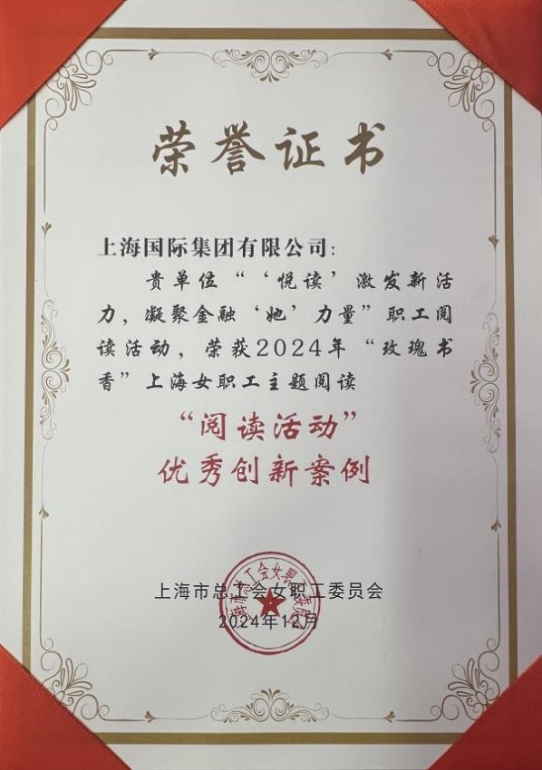 近日,上海市總工會女職工委員會發(fā)布22個2024 年“玫瑰書香”上海女職工主題閱讀活動優(yōu)秀創(chuàng)新案例,集團工會“‘悅讀’ 激發(fā)新活力,凝聚金融‘她’力量”職工閱讀活動,憑借其創(chuàng)新性和顯著成效,獲市總工會通報表揚。