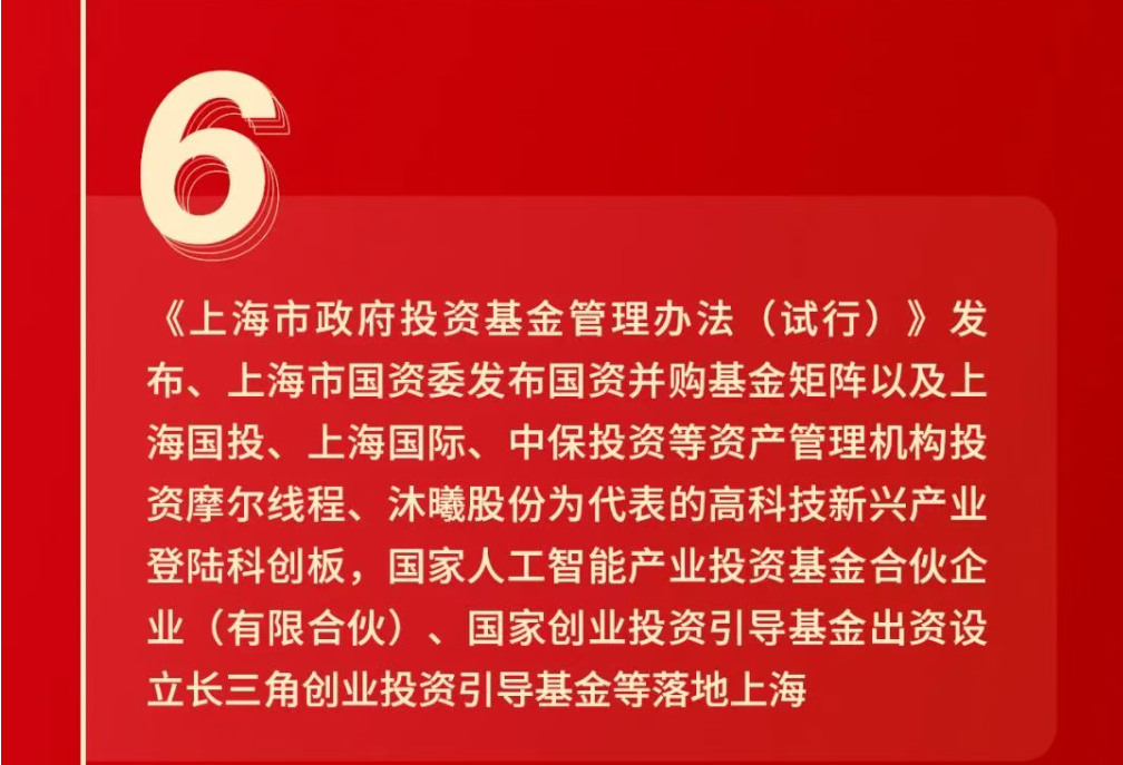 2026年1月20日,上海資產(chǎn)管理協(xié)會(huì)正式發(fā)布“2025上海全球資產(chǎn)管理中心建設(shè)十項(xiàng)大事”。其中,集團(tuán)助力沐曦股份等為代表的高科技新興產(chǎn)業(yè)成功登陸科創(chuàng)板,以及新加坡豐隆星河QFLP專項(xiàng)基金落地上海成功入選。